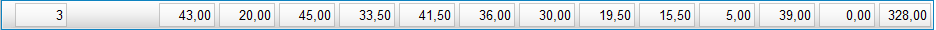 Sloupce 1-12 zobrazují jednotlivé měsíce roku. V každém sloupci je uvedená hodnota čerpané dovolené v tomto měsíci, a to zelenou barvou. |