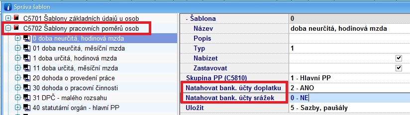- parametr u šablony pracovních poměrů osob (C5702): nastaveno