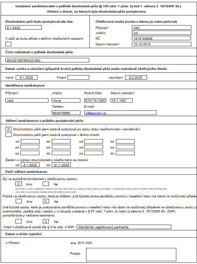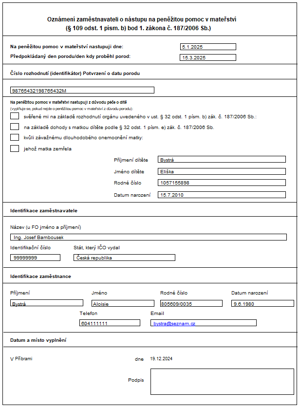 které jsou naplněné do žádosti o dávku a kterou necháte zaměstnanci podepsat,