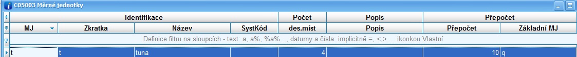 · Reinstalace doplní MJ t – tuna, ks – kus, kg - kilogram (viz. celní sazebník C05040 – MJ pro výkaz DPHEVD). Někteří uživatelé ještě používají staré číselné označení, např. pro tunu číslo 17.
