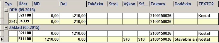 generovaného řádku při zápisu došlých fa
